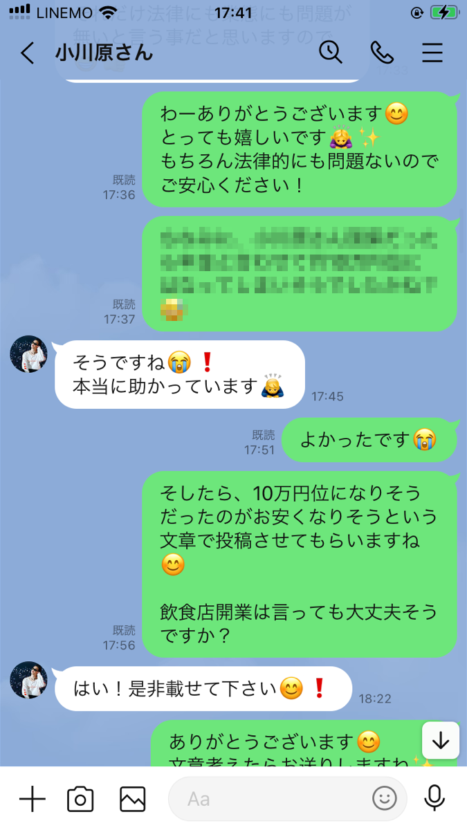 ジェラート店経営 栃原 大介様 プロが考えた仕組みに感動!法律上の問題なく、目に見える形で証拠が確認できたのも安心でした。 年齢 47歳 家族構成 ご夫婦・お子様3人 削減額/月額 約63,000円削減!